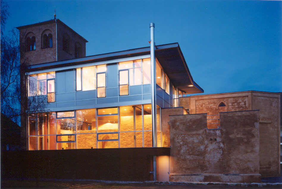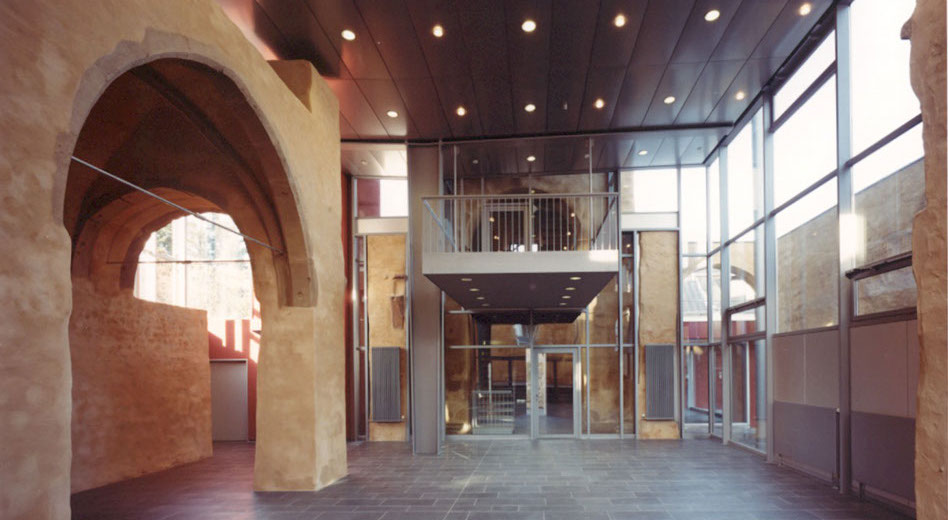 Im Wettbewerbsverfahren lag der Schwerpunkt auf der Sicherung und Erhaltung der als Denkmalwert befundenen Bausubstanz und deren Einbeziehung in eine eigenständige Architektur. Das Hauptmerkmal der architektonischen Idee liegt in der „trennscharfen“ Einfügung eines neuen transparenten Baukörpers, die ruinenhafte Topographie des Baudenkmals kontrastierend. Die räumlich versetzte Überlagerung von Baudenkmal und Neubau erzeugt spannungsvolle Wechselbeziehungen zwischen Innen- und Außenräumen.